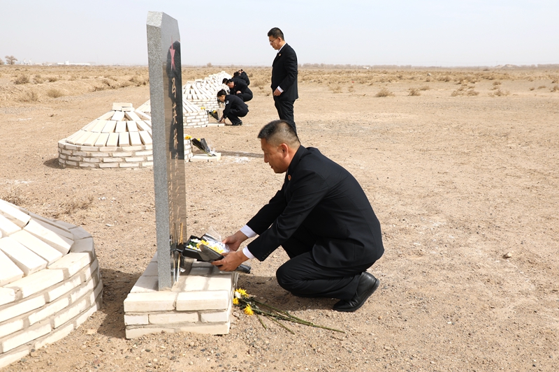 2024年清明节,检察人员祭拜烈士。